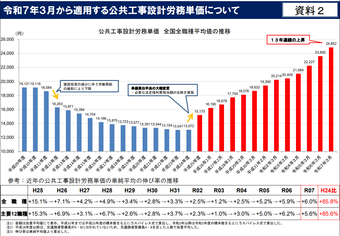 それが、**国土交通省が毎年公表している「公共工事設計労務単価表」**です。