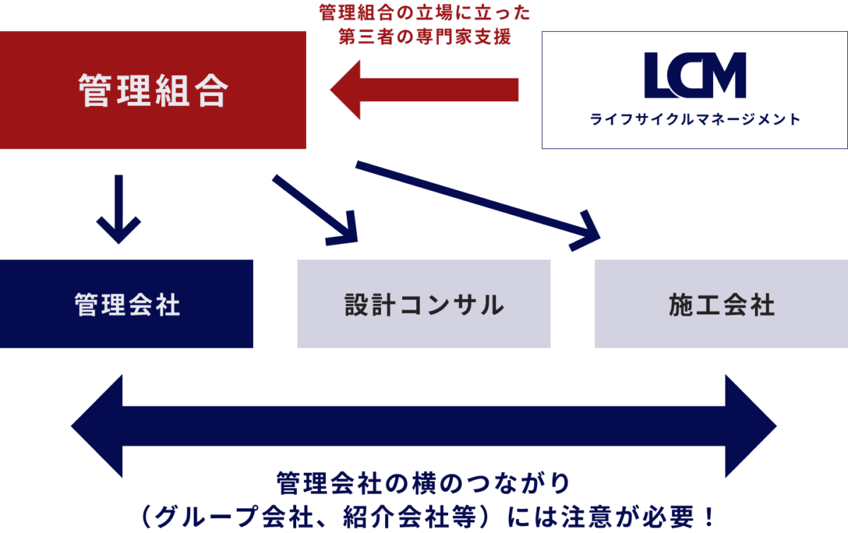LCMでは、すべての項目について、管理組合の立場に立った中立的な助言を行っています。